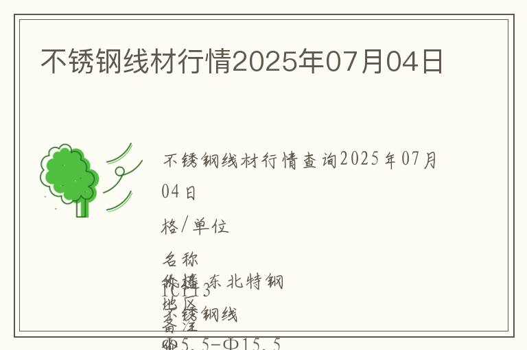 | 不銹鋼線材行情查詢2025年07月04日 |