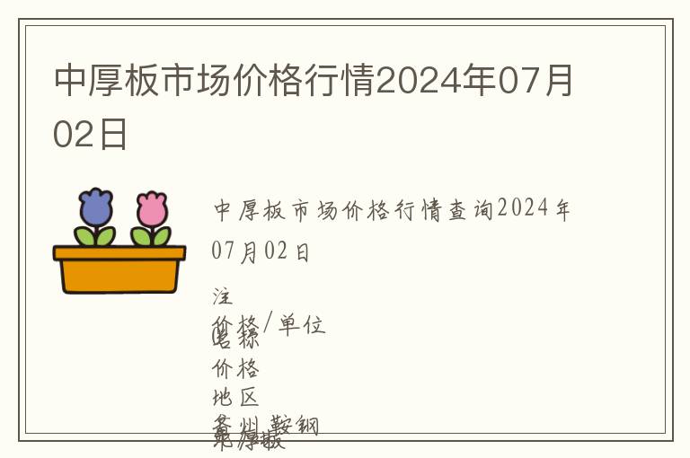 | 中厚板市場價格行情查詢2024年07月02日 |