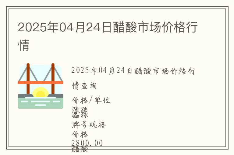 | 2025年04月24日醋酸市場價格行情查詢 |