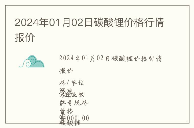 | 2024年01月02日碳酸鋰價格行情報價 |