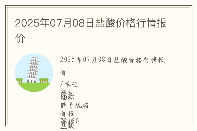 | 2025年07月08日鹽酸價格行情報價 |