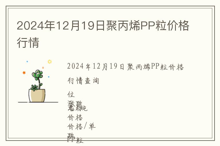 2024年12月19日聚丙烯PP粒價(jià)格行情