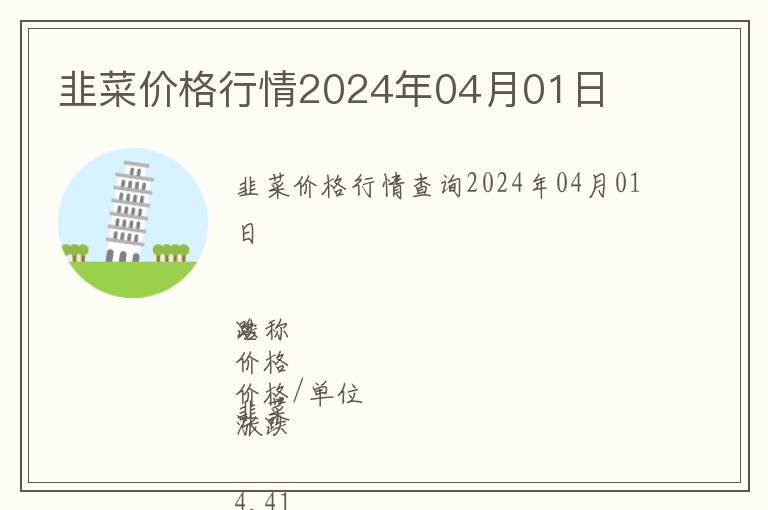 | 韭菜價格行情查詢2024年04月01日 |