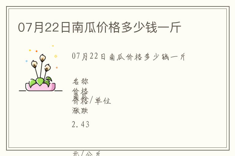 | 07月22日南瓜價(jià)格多少錢一斤 |