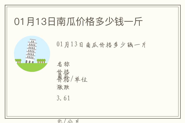 | 01月13日南瓜價(jià)格多少錢一斤 |