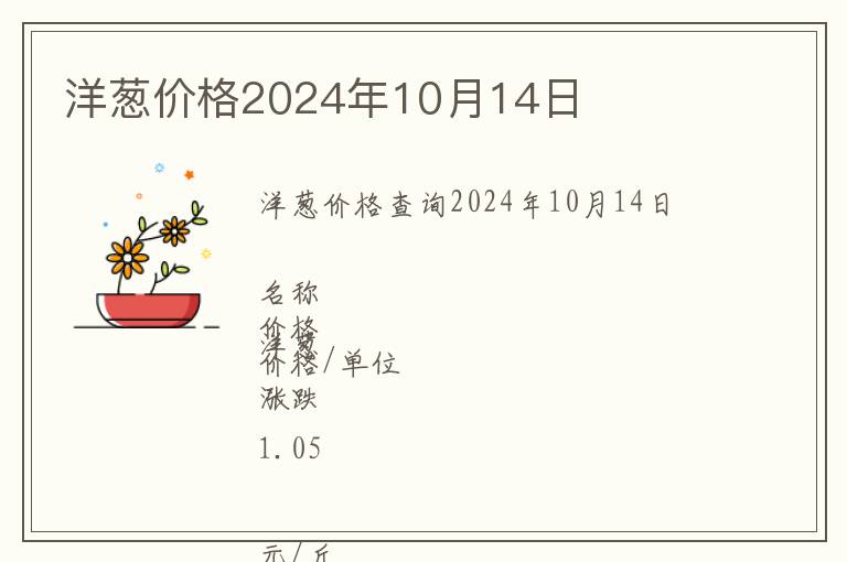 | 洋蔥價(jià)格查詢2024年10月14日 |