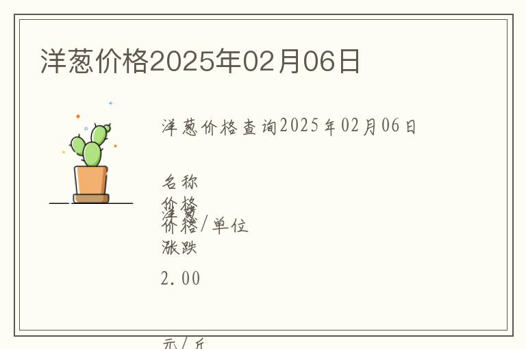 | 洋蔥價(jià)格查詢2025年02月06日 |