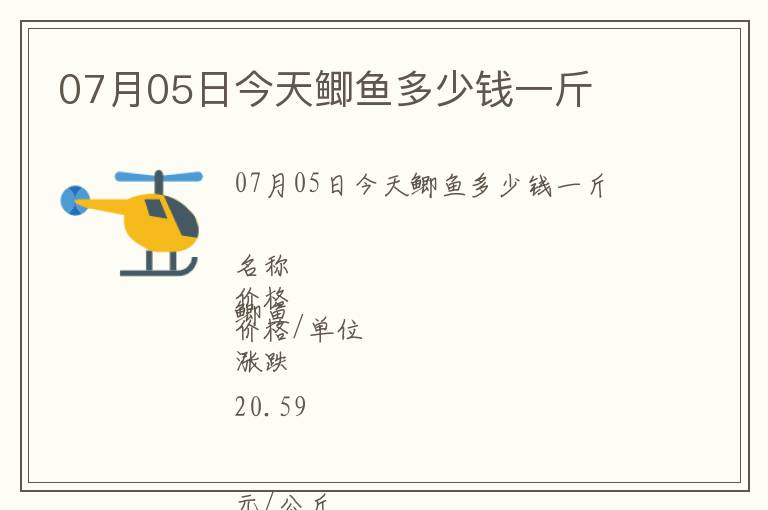 | 07月05日今天鯽魚多少錢一斤 |