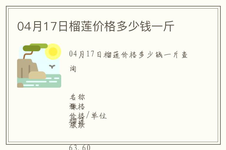 | 04月17日榴蓮價格多少錢一斤查詢 |