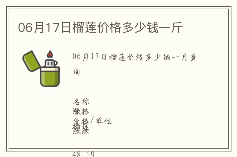 | 06月17日榴蓮價格多少錢一斤查詢 |