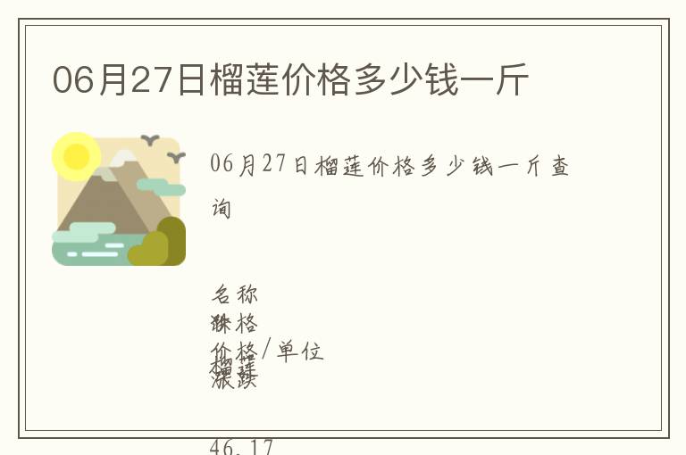 | 06月27日榴蓮價格多少錢一斤查詢 |