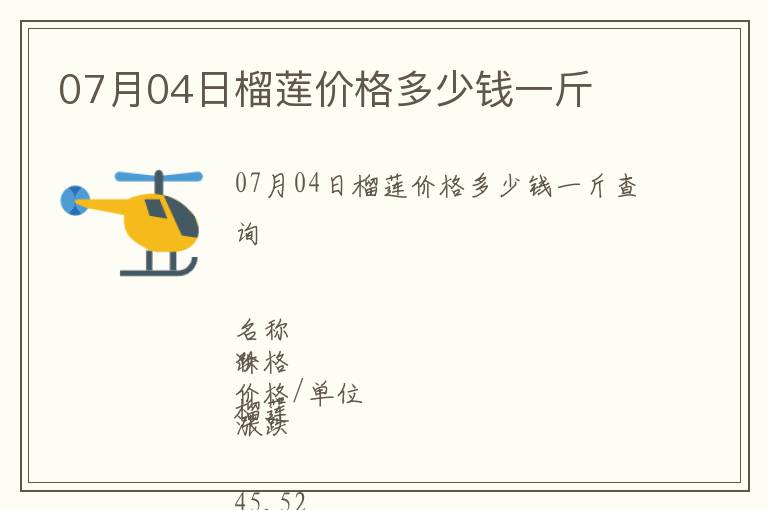 | 07月04日榴蓮價(jià)格多少錢一斤查詢 |