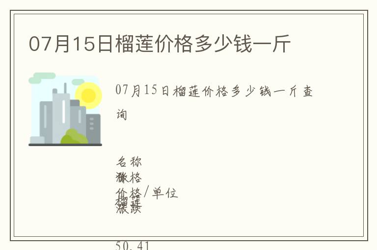 | 07月15日榴蓮價格多少錢一斤查詢 |