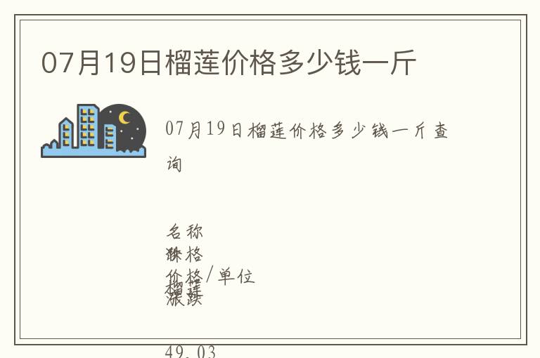 | 07月19日榴蓮價格多少錢一斤查詢 |