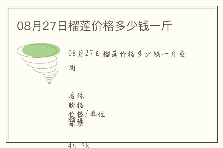 | 08月27日榴蓮價格多少錢一斤查詢 |