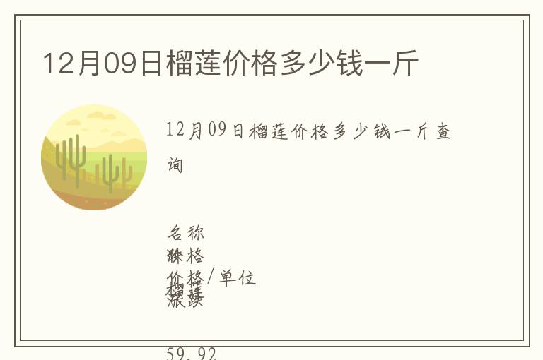 | 12月09日榴蓮價(jià)格多少錢一斤查詢 |