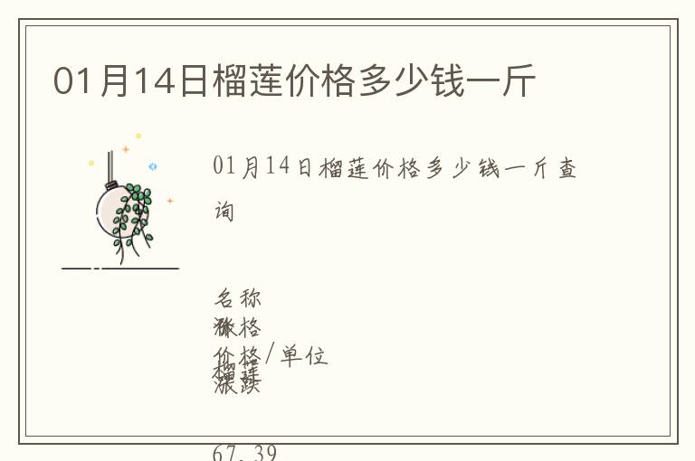 | 01月14日榴蓮價格多少錢一斤查詢 |