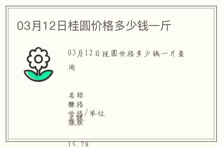 | 03月12日桂圓價格多少錢一斤查詢 |