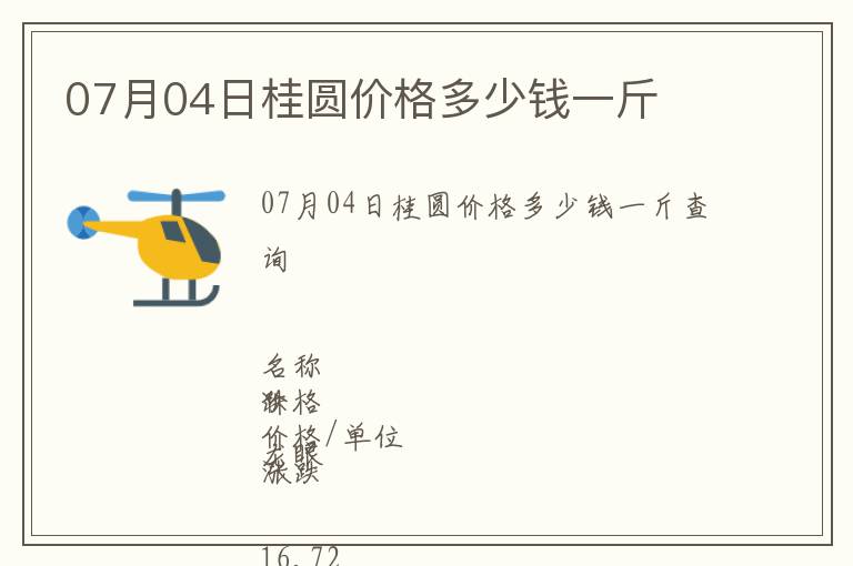 | 07月04日桂圓價(jià)格多少錢一斤查詢 |