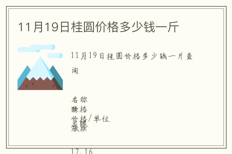 | 11月19日桂圓價(jià)格多少錢一斤查詢 |