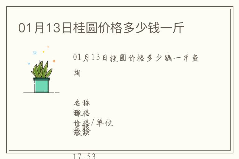 | 01月13日桂圓價格多少錢一斤查詢 |