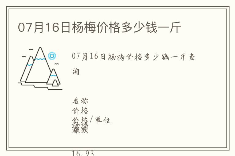 | 07月16日楊梅價格多少錢一斤查詢 |