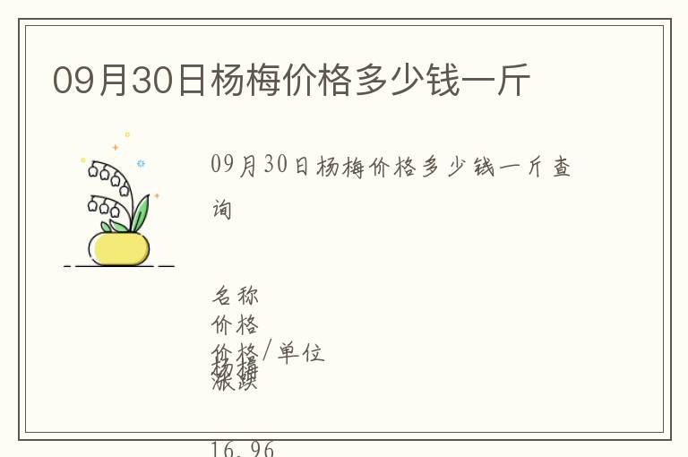 | 09月30日楊梅價格多少錢一斤查詢 |