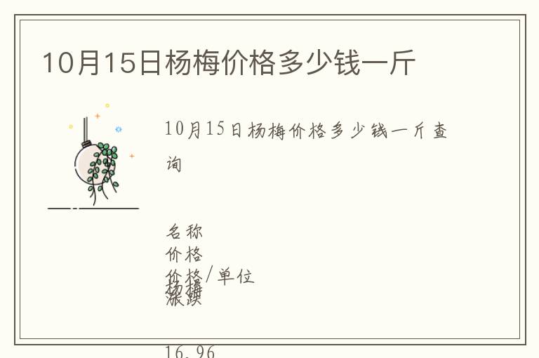 | 10月15日楊梅價(jià)格多少錢一斤查詢 |