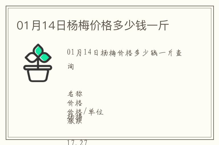 | 01月14日楊梅價格多少錢一斤查詢 |