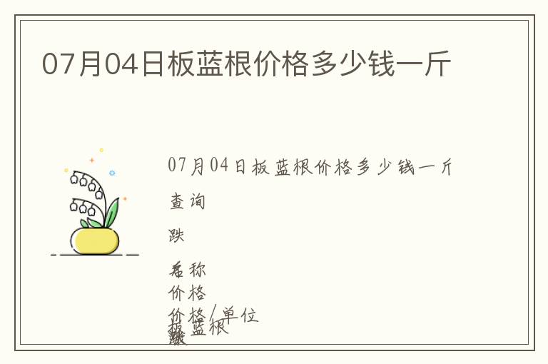 | 07月04日板藍根價格多少錢一斤查詢 |