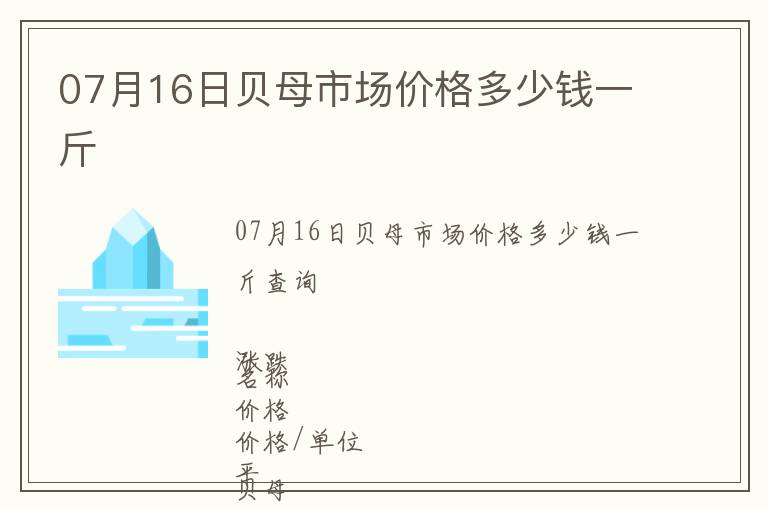 | 07月16日貝母市場價格多少錢一斤查詢 |