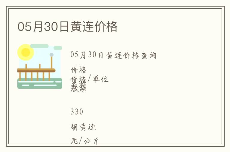 | 05月30日黃連價格查詢 |