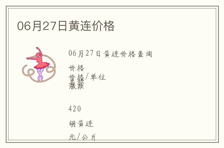 06月27日黃連價(jià)格