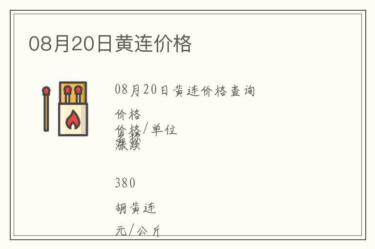 | 08月20日黃連價格查詢 |