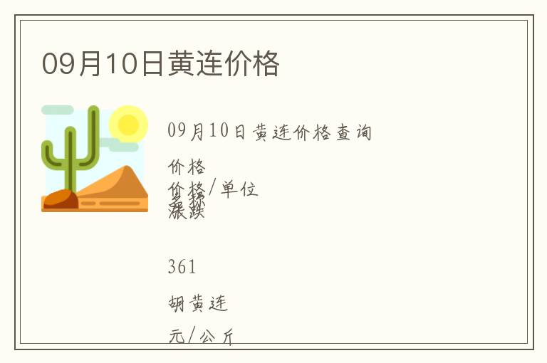 | 09月10日黃連價格查詢 |