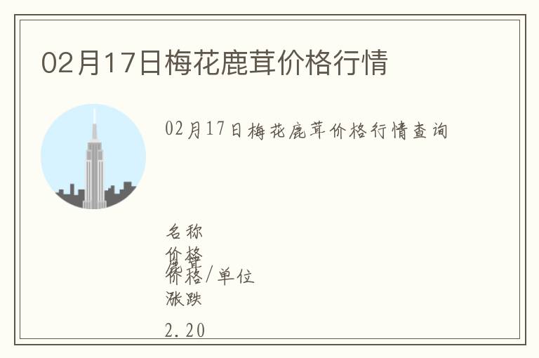 | 02月17日梅花鹿茸價格行情查詢 |