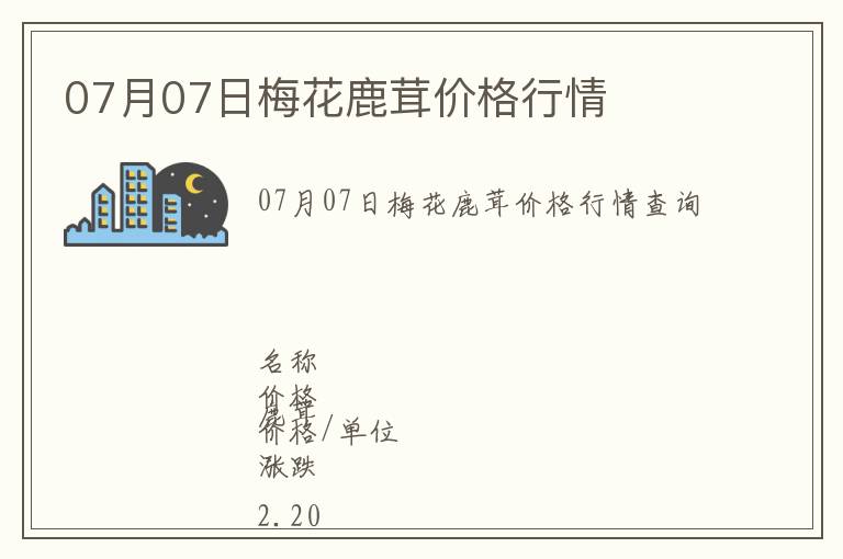 | 07月07日梅花鹿茸價格行情查詢 |